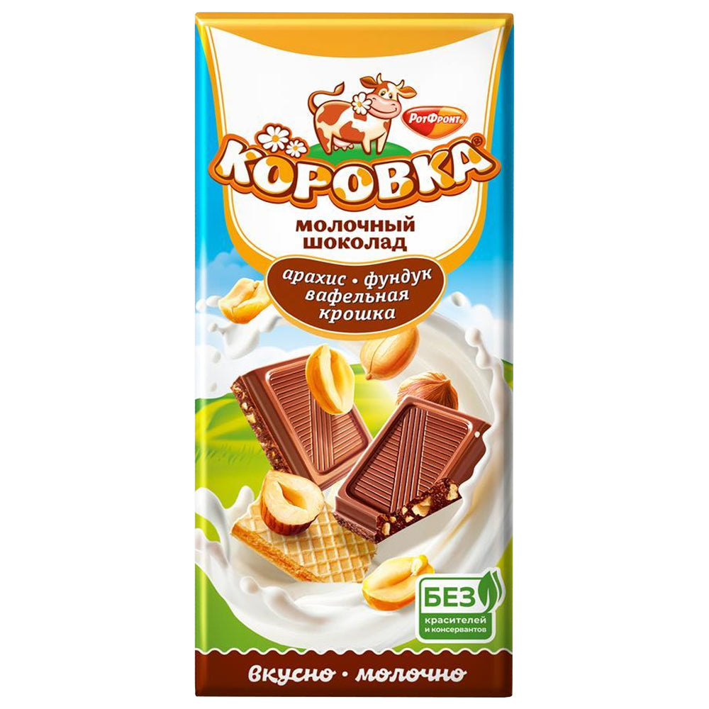 Milk Chocolate with Peanuts, Hazelnuts & Waffle Crumbs "Korovka", Rot Front, 75g/ 2.65 oz