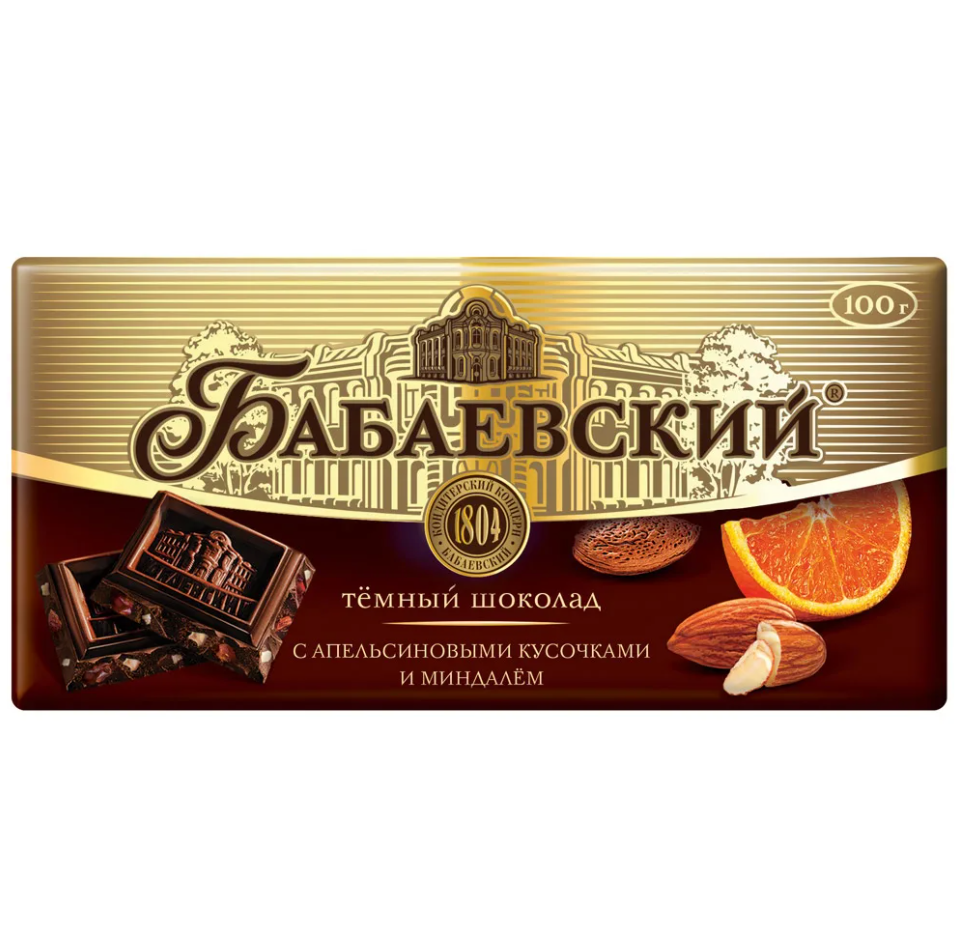 Темный шоколад с кусочками апельсина и миндаля, Бабаевский 75 г/2,65 унции