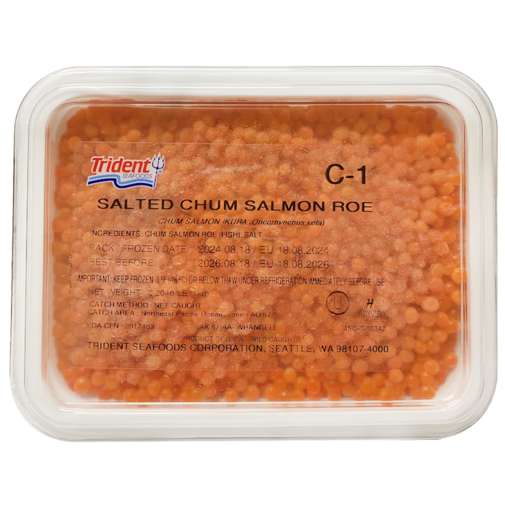 Indulge in the exquisite taste of Salted Chum Salmon Caviar C-1 by Trident, a luxurious delicacy in a generous 1 kg (2.2 lb) package.