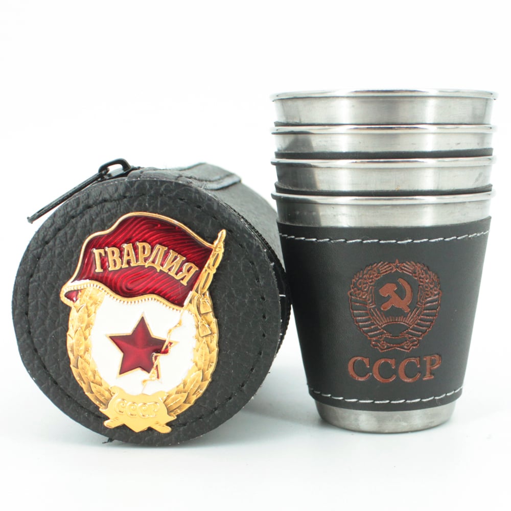 Рюмка из нержавеющей стали с символами Красной гвардии, 4 шт. в футляре, 70 мл
